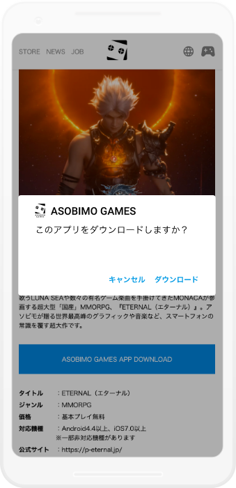 アプリのダウンロードを確認するメッセージが表示されるので「ダウンロード」を選択してください
