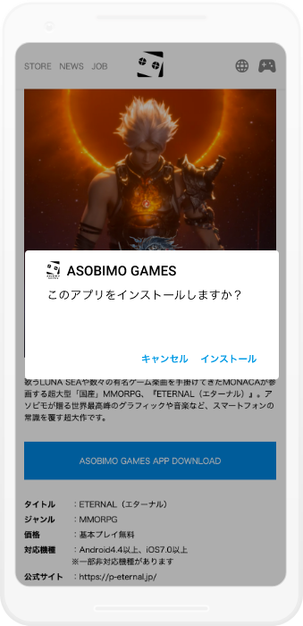 アプリのインストールを確認するメッセージが表示されるので「インストール」を選択してください