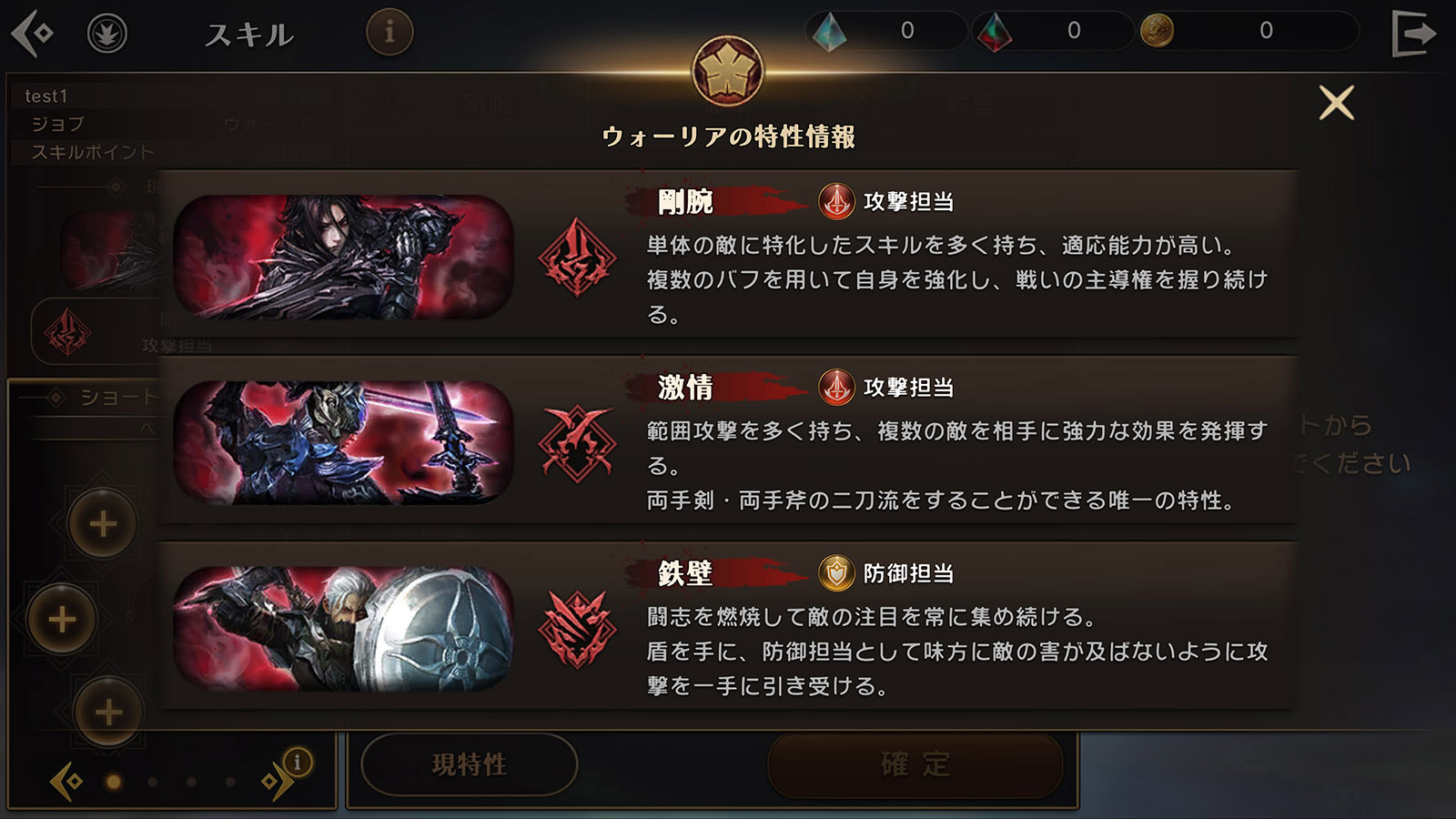 キャラクター作成時に選択できるジョブ(職業)には、3種類の「特性」が存在。