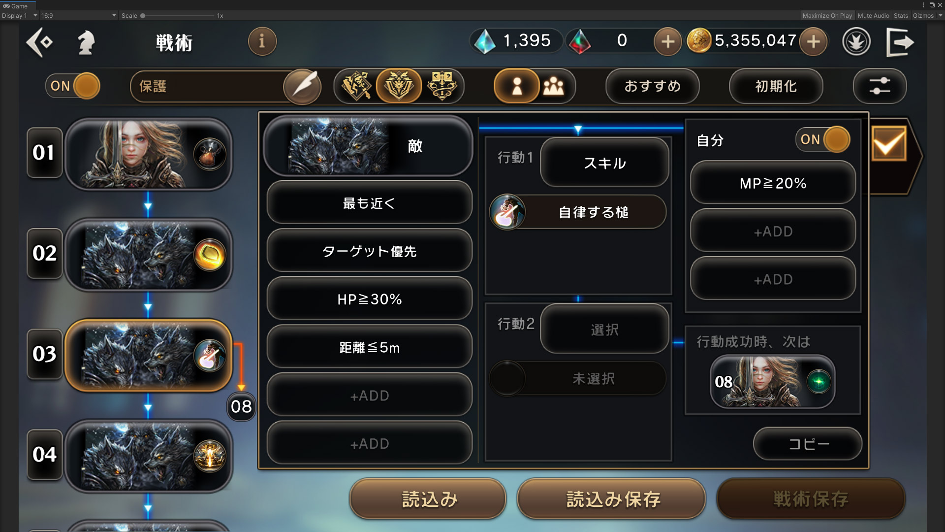 特定の状況下におけるキャラクターのオート行動を設定できます。