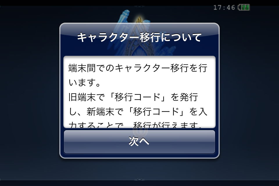 ※移行コードを用いたキャラクター移行を連続して行いますと、キャラクター情報が消滅する恐れがあります。