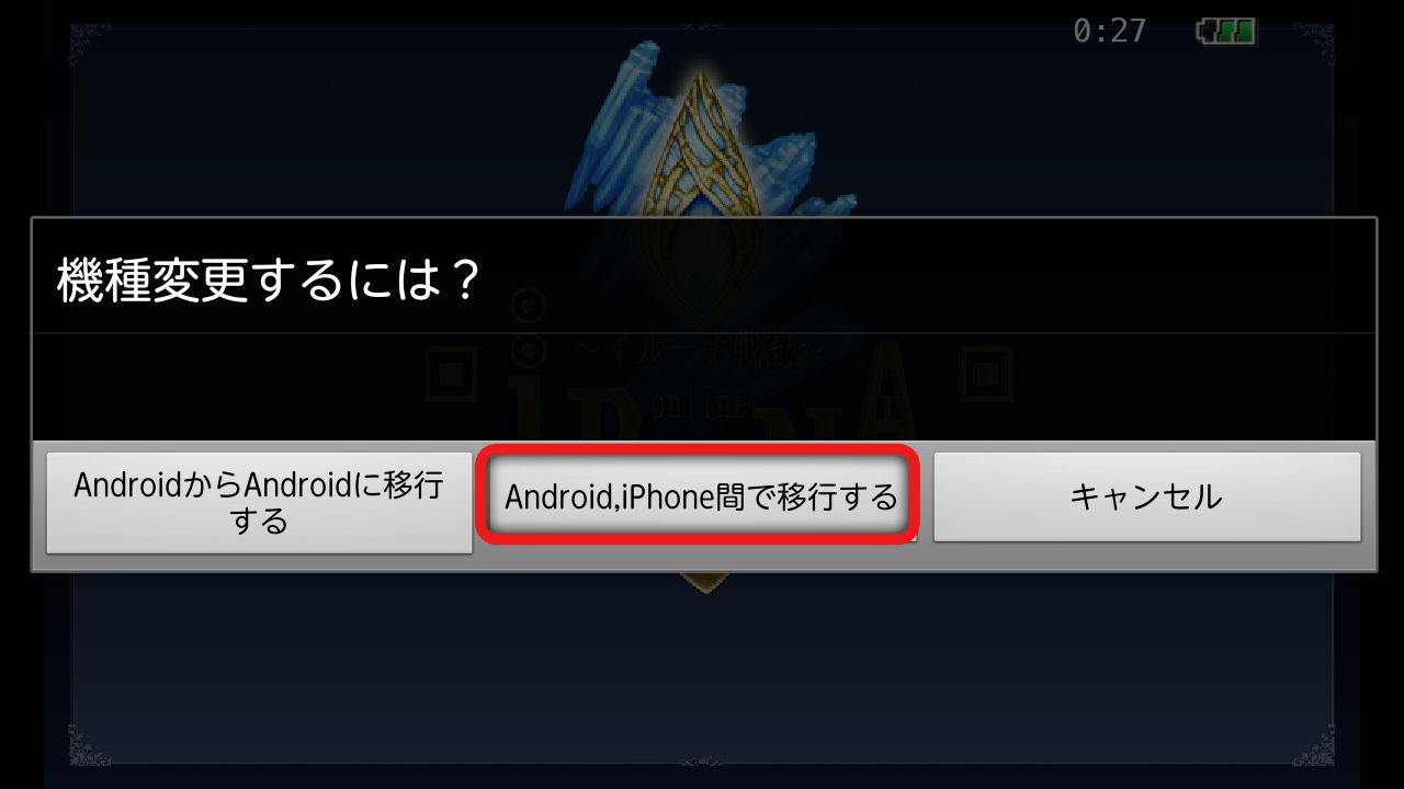 プラットフォーム間のデータ移行につきましては、「移行コード」を用いた新端末へのデータ移行をお試しください。